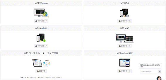 メニューの取引ツールのダウンロード一覧から「MT5ダウンロード」をクリックします。