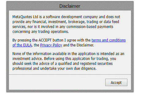 MT5のWebTraderへ初回ログインする際は、注意事項への同意が求められます。
